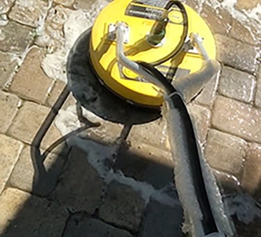 Joint Cleaning: A rotary pressure tip cleans deep between the joints, removing old sand, dead weeds, and remaining residue.