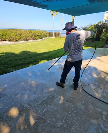 -Efflorescence Treatment: The most important part in pavers treatment. Efflorescence - the white, hazy film often seen on pavers - is a natural occurrence caused by mineral deposits. We use a specially formulated efflorescence remover that dissolves these deposits, opens the paver’s pores, and prepares the surface for optimal sealer absorption.