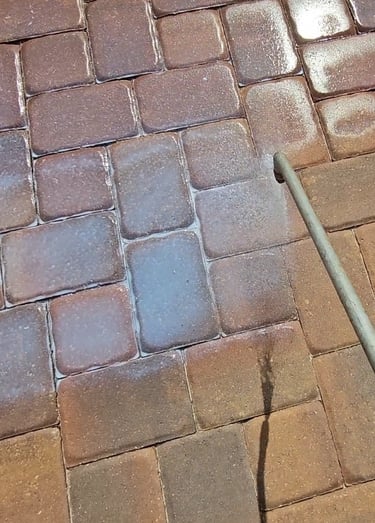 Surface Cleaning: A commercial-grade surface cleaner is used removes dirt, grime, mold, and debris from the top of the pavers.